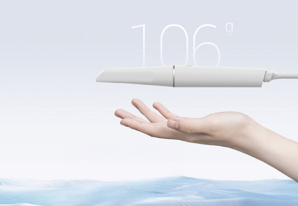 Weighing only 106g, Aoralscan Elf offers pen-like ergonomics that ensure comfortable, fatigue-free scanning – even during extended procedures.